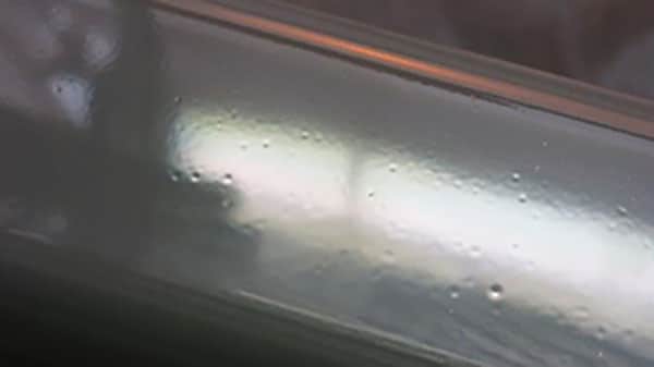 Cissing and dimpling (sometimes known as “Crawling” or “Fisheyes”) are very small circular defects, where the paint has receded to expose the underlying substrate or coating. If the central underlying substrate area is visible, the defect is known as cissing. If the central underlying substrate area is not visible the defect is known as a dimple. The defects are usually around 1-3mm in diameter and are normally visible straight after application. Cissing is normally visible straight after application.